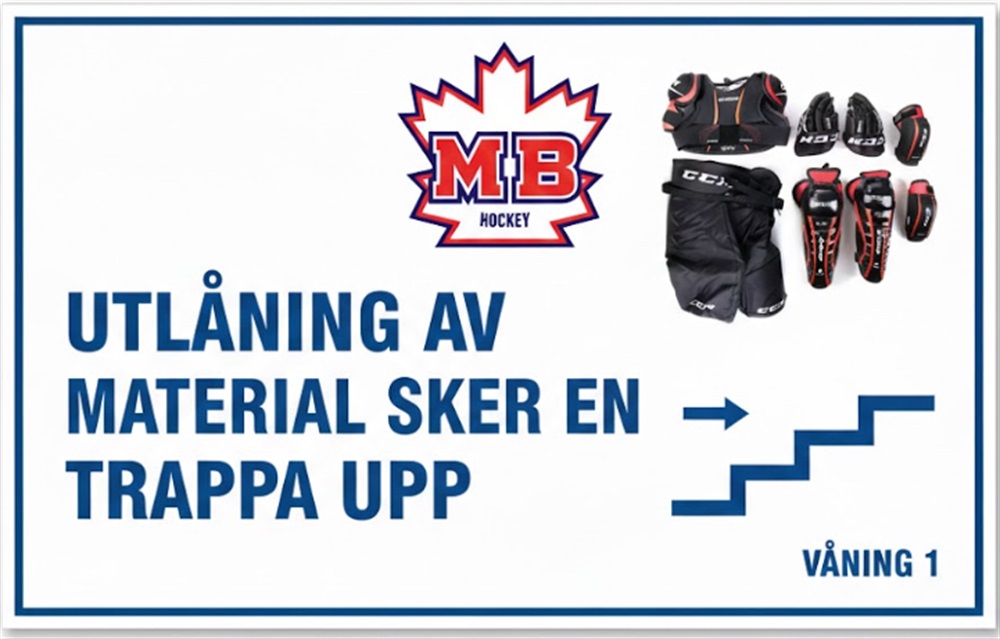 Vi gör om i våra förrådsutrymmen och hockeyskolans materialutlåning sker därför en trappa upp, på läktaren bredvid kafeterian.