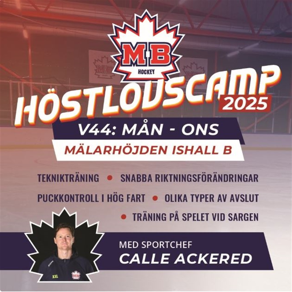 Höstlovscamp 2025 i Mälarhöjdens ishall B. Campen planeras och drivs av sportchef Calle Ackered tillsammans med våra ideella ledare.